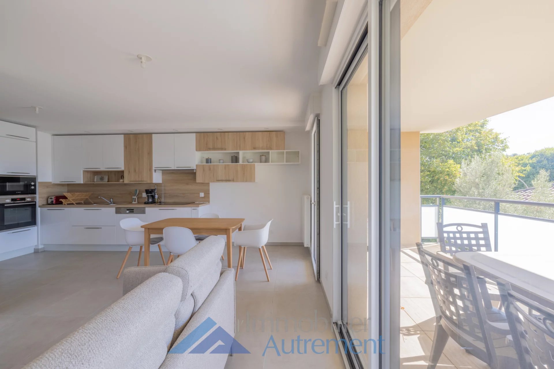 It features a large, bright living room opening onto a new, fully-equipped kitchen, ideal for sharing convivial moments.