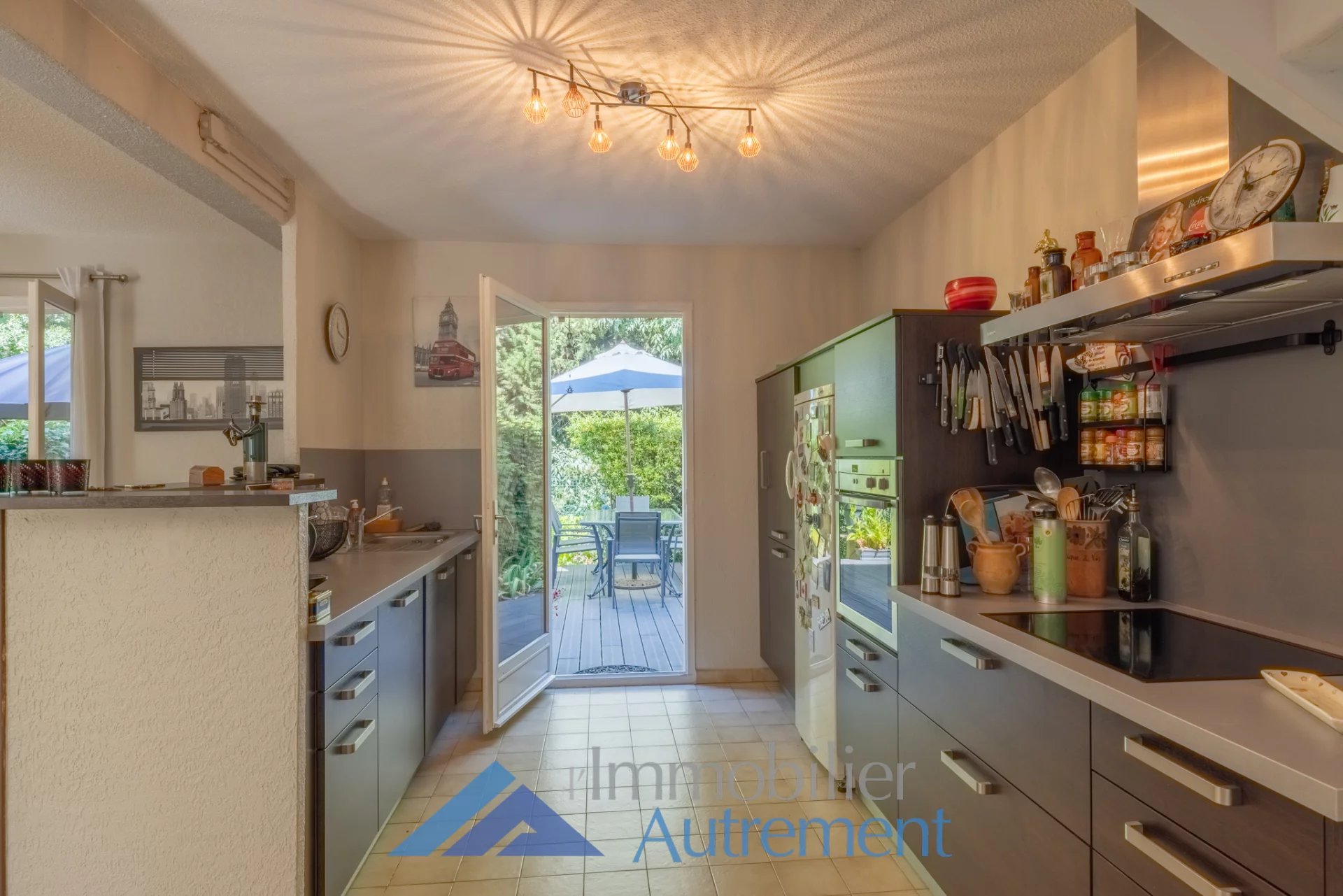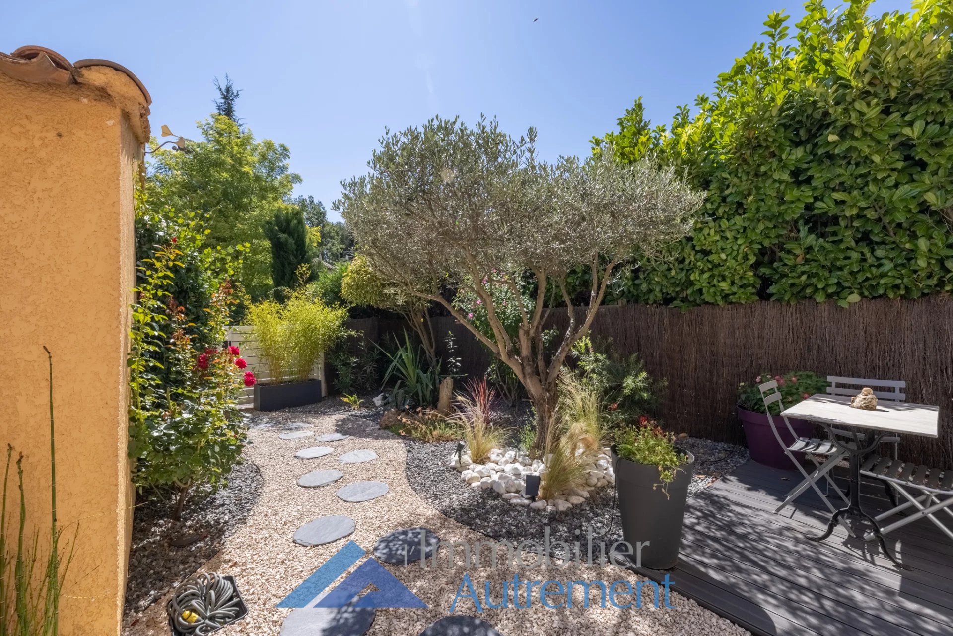 Au calme dans un quartier résidentiel proche de toutes commodités, sur un terrain clos et arboré de 200 m² maison mitoyenne de 90 m² habitables comprenant: un grand séjour salon, une cuisine américaine entièrement équipée, Trois chambres avec rangements, une salle de bain et une salle d'eau.